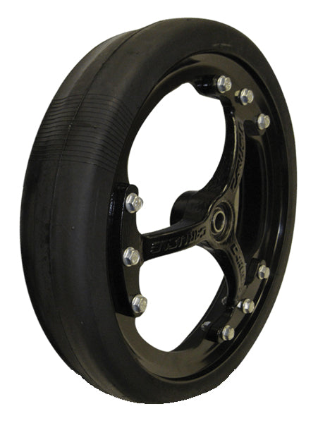 Spoked gauge wheels are designed to allow mud to flow away from the seed furrow and openers. The snap-ring installed bearing allows for quick and easy field replacement.